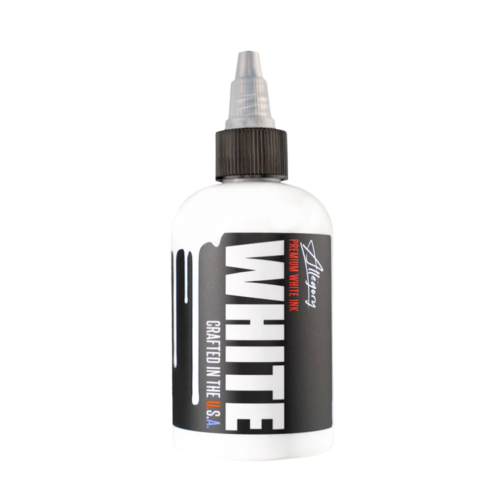 Allegory White es una tinta blanca de alta calidad diseñada para ofrecer luminosidad, suavidad y consistencia en cada aplicación. Su pigmento brillante y homogéneo facilita una implantación limpia y pareja, manteniendo su intensidad tanto en pieles claras como oscuras incluso después de la curación.