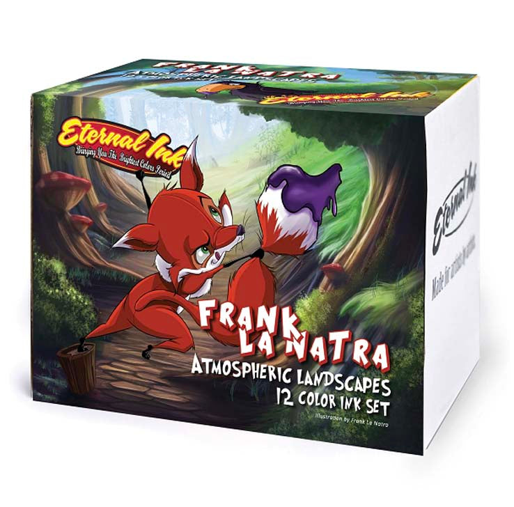 El artista del tatuaje Frank La Natra proporciona una base para dominar los paisajes y los efectos atmosféricos con este conjunto único de 12 tonos. Este conjunto educativo proporciona un sistema de mezcla que utiliza una gama de valores atmosféricos para desaturar un tono de paisaje y crear una perspectiva atmosférica.