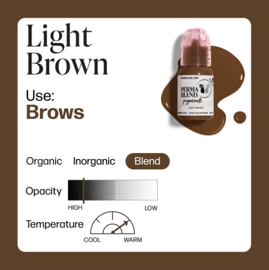 El tono Light Brown de Perma Blend es un marrón claro natural ideal para crear cejas suaves, definidas y de aspecto elegante. Perfecto para clientes que buscan un acabado delicado y armonioso.