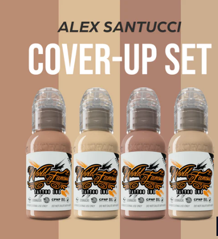 Un set profesional de tintas para tatuajes en tonos de piel, diseñado especialmente para cubrir tatuajes antiguos o indeseados con resultados más naturales y homogéneos. Este kit fue formulado con máxima opacidad en colores piel, lo que permite saturar sobre tatuajes oscuros y recuperar una “base” para un nuevo diseño.