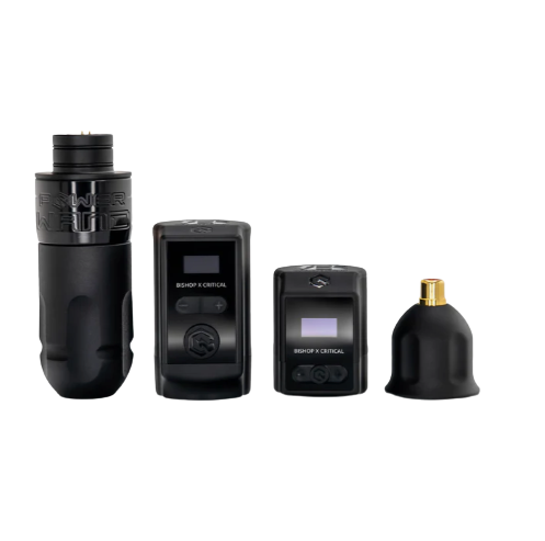 La máquina WAND que conoces, maquina de tatuar inalambrica, con una nueva placa trasera magnética que permite que las baterías Bishop x Critical queden al ras de la máquina.